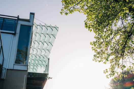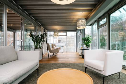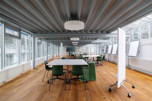 Das Glashaus ist ein lichtdurchfluteter, 190 m² grosser Raum, der durch sein modernes Design besticht. Mit einem atemberaubenden Blick auf das Berner Münster und einer Lage direkt an der Aare bietet dieser Raum eine inspirierende Umgebung. Perfekt geeignet für Sitzungen und Workshops, überzeugt das Glashaus zudem durch eine vielseitig nutzbare und mobile Einrichtung.